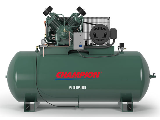 Champion 5 Horsepower R-Series Reciprocating Compressor model VR5-12, 208V/3 Phase mounted on 120 Gallon Vertical Tank